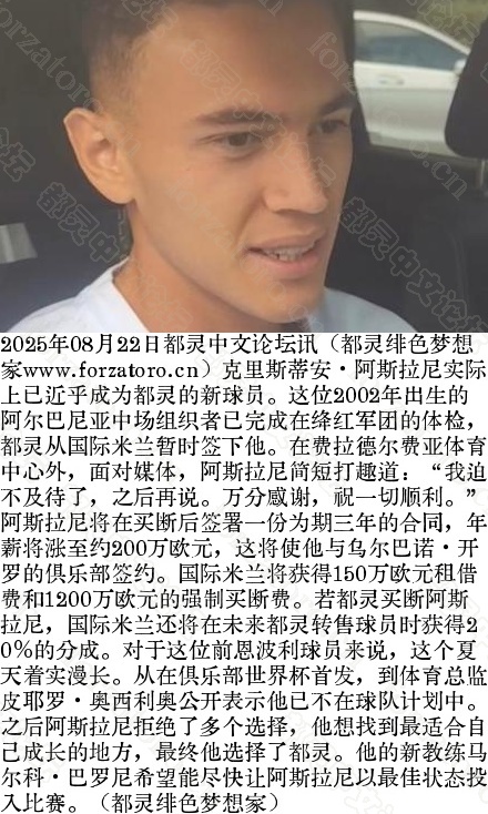 Kristjan Asllani 克里斯蒂安·阿斯拉尼:都灵重燃兴趣 |